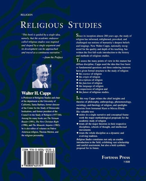 Since its inception almost 200 years ago, the study of religion has informed, enlightened, provoked, and challenged our notions of humanity's deepest beliefs and longings. Now Walter Capps, nationally recognized for the quality and depth of his teaching, has written the first full-scale introduction to the history and methods of religious studies. To assess the many points of view in this mature but diffuse discipline. Capps uses the idea that four basic of fundamental questions and three enduring interests have given formal structure to the study of religion: the essence of religion; the origin of religion, descriptions of religion; the function of religion, the language of religion, comparisons of religion and, the future of religious studies. In this way Capps relates the chief insights and theories of philosophy, anthropology, phenomenology, sociology, and theology of religion, and spotlights theorists from Immanuel Kant to Mircea Eliade. His valuable text unites in a single narrative and conceptual framework the major methodological proposals for the academic study of religion; treats all the major theorists in their respective disciplines, schools of thought, and intellectual movements; treats the whole discipline as a dynamic and evolving tradition. Religious Studies constitutes not only an erudite introduction to the field, exhibiting vast scholarship and careful assessment, but also a bold synthetic proposal for its future.