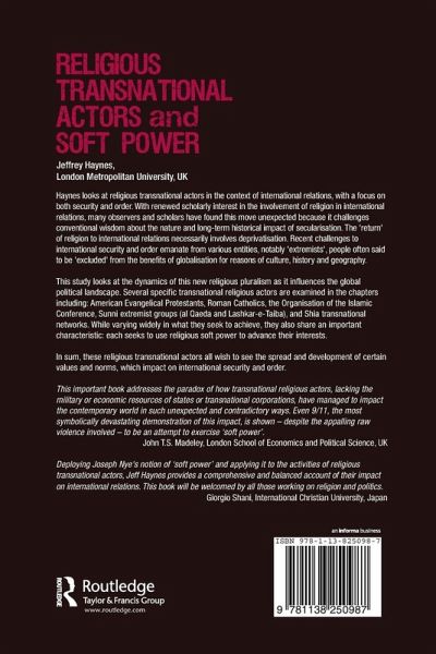 This study looks at the dynamics of this new religious pluralism as it influences the global political landscape. Several specific transnational religious actors are examined in the chapters including: American Evangelical Protestants, Roman Catholics, the Organisation of the Islamic Conference, Sunni extremist groups (al Qaeda and Lashkar-e-Taiba), and Shia transnational networks. While varying widely in what they seek to achieve, they also share an important characteristic: each seeks to use religious soft power to advance their interests.