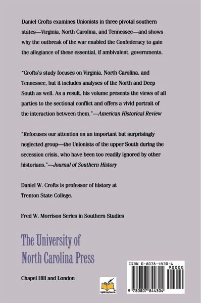 Daniel Crofts examines Unionists in three pivotal southern states?Virginia, North Carolina, and Tennessee?and shows why the outbreak of the war enabled the Confederacy to gain the allegiance of these essential, if ambivalent, governments.