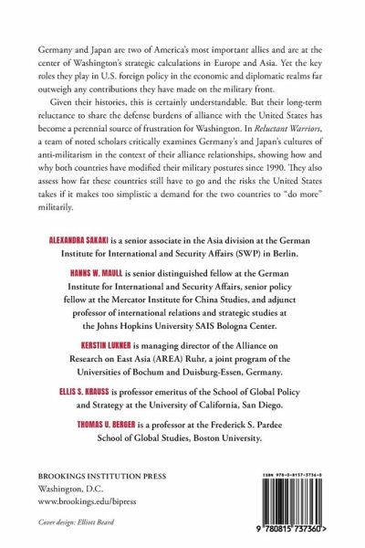 Can Germany and Japan do more militarily to uphold the international order? Since the end of World War II, Germany and Japan have been the most reluctant of all major U.S. allies to take on military responsibilities. Given their histories, this reluctance certainly is understandable. But because of their size and economic importance, Germany and Japan are the most important U.S. allies in Europe and in East Asia, respectively, and their long-term reluctance to share the defense burden has become a perennial source of frustration for Washington. The potential security roles of Germany and Japan are becoming increasingly important given the uncertainty, indeed volatility, of today's international environment. Under President Trump, friction among allies over burden-sharing is more intense than ever before. Meanwhile, the security environments in Europe and Asia have deteriorated because of the resurgence of a belligerent Russia under Vladimir Putin, the steady rise of an increasingly assertive China, and North Korea's worrisome acquisition of nuclear weapons. Partly in response to these developments, Germany and Japan in recent years have boosted their security efforts, mainly by increasing defense spending and taking on a somewhat broader range of military missions. Even so, because of their cultures of anti-militarism resistance remains strong in both countries to rebuilding the military and assuming more responsibility for sustaining regional or even global peace. In Reluctant Warriors, a team of noted international experts critically examines how and why Germany and Japan have modified their military postures since 1990 so far, and assesses how far the countries still have to go-and why. The contributors also highlight the risks the United States takes if it makes too simplistic a demand for the two countries to "do more."