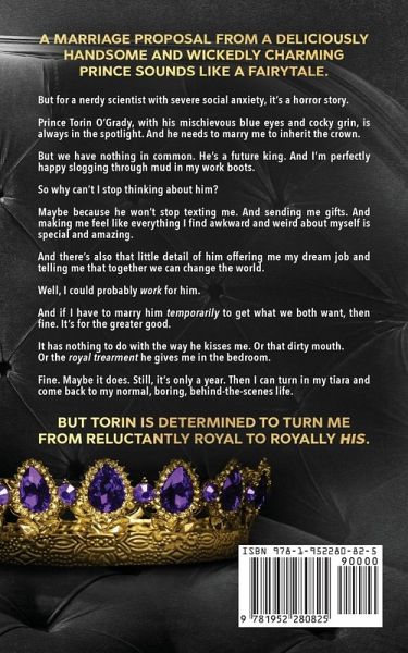 A marriage of convenience between a dirty-talking prince and the socially awkward scientist who brings him to his knees... A marriage proposal from a deliciously handsome and wickedly charming prince sounds like a fairytale. But for a nerdy scientist with severe social anxiety,it's a horror story. Prince Torin O'Grady, with his mischievous blue eyes and cocky grin, is always in the spotlight. And he needs to marry me to inherit the crown. But we have nothing in common. He's a future king. And I'm perfectly happy slogging through mud in my work boots. So why can't I stop thinking about him? Maybe because he won't stop texting me. And sending me gifts. And making me feel like everything I find awkward and weird about myself is special and amazing. And there's also that little detail of him offering me my dream job and telling me that together we can change the world. Well, I could probably work for him. And if I have to marry him temporarily to get what we both want, then fine. It's for the greater good. It has nothing to do with the way he kisses me. Or that dirty mouth. Or the royal treatment he gives me in the bedroom. Fine. Maybe it does. Still, it's only a year. Then I can turn in my tiara and come back to my normal, boring, behind-the-scenes life. But Torin is determined to turn me from reluctantly royal to royally his.