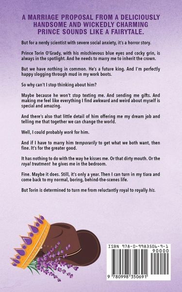 A marriage of convenience between a dirty-talking prince and the socially awkward scientist who brings him to his knees... A marriage proposal from a deliciously handsome and wickedly charming prince sounds like a fairytale. But for a nerdy scientist with severe social anxiety,it's a horror story. Prince Torin O'Grady, with his mischievous blue eyes and cocky grin, is always in the spotlight. And he needs to marry me to inherit the crown. But we have nothing in common. He's a future king. And I'm perfectly happy slogging through mud in my work boots. So why can't I stop thinking about him? Maybe because he won't stop texting me. And sending me gifts. And making me feel like everything I find awkward and weird about myself is special and amazing. And there's also that little detail of him offering me my dream job and telling me that together we can change the world. Well, I could probably work for him. And if I have to marry him temporarily to get what we both want, then fine. It's for the greater good. It has nothing to do with the way he kisses me. Or that dirty mouth. Or the royal treatment he gives me in the bedroom. Fine. Maybe it does. Still, it's only a year. Then I can turn in my tiara and come back to my normal, boring, behind-the-scenes life. But Torin is determined to turn me from reluctantly royal to royally his.
