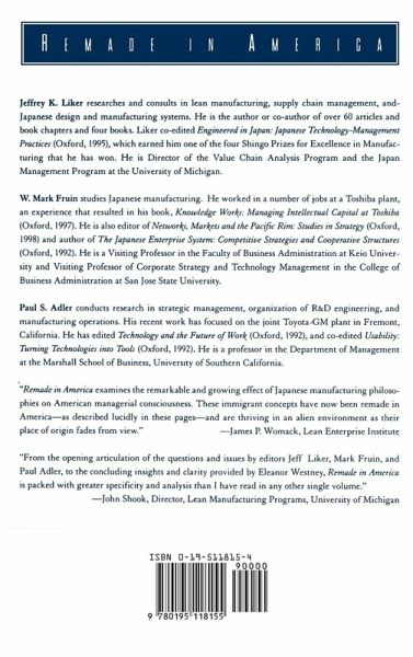 Over the last two decades, Japanese firms have challenged U.S. dominance in many manufacturing industries. This challenge has increasingly come in the form of transplant operations, and recognition has spread that their success owes a great deal to superior manufacturing management. Despite the ups and downs of the business cycle in Japan, there remains a core of world-class Japanese companies that have developed manufacturing management systems that companies throughout the world strive to emulate. In this edited volume, a team of eminent scholars uses case studies and large-scale surveys to explain in depth the process of transferring and transforming the best Japanese Management Systems (JMS) by both Japanese- and U.S.-owned firms. While the most successful of the Japanese manufacturing transplants rely, to varying degrees, on home country management techniques, they have had to adapt them to fit U.S. conditions. Similarly, the growing number of U.S. firms that are adopting these techniques to strengthen their own positions face a considerable challenge in transforming them to fit local conditions. A new environment necessarily compels the transformation of JMS. But despite the hurdles firms face, the evidence presented here and elsewhere strongly indicates that key aspects of JMS are remarkably transferable and successful in the United States. Combining scientific data with clear and engaging prose,Remade in America is a rich analytical resource for manufacturing professionals, as well as scholars and students of management and business.