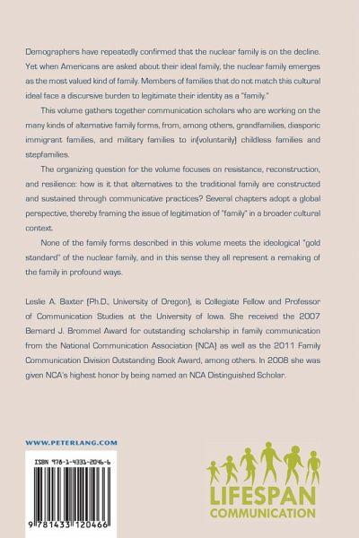 The organizing question for the volume focuses on resistance, reconstruction, and resilience: how is it that alternatives to the traditional family are constructed and sustained through communicative practices? Several chapters adopt a global perspective, thereby framing the issue of legitimation of «family» in a broader cultural context.