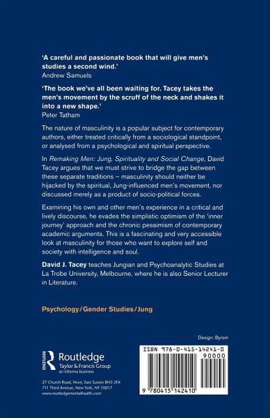 In Remaking Men, David Tacey argues that we must strive to bridge the gap between these separate traditions - masculinity should neither be hijacked by the spiritual, Jung-influenced men's movement, nor discussed merely as a product of socio-political forces.