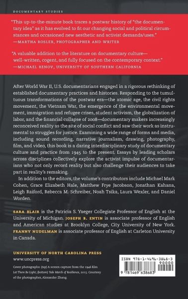 After World War II, U.S. documentarians engaged in a rigorous rethinking of established documentary practices and histories. Responding to the tumultuous transformations of the postwar era--the atomic age, the civil rights movement, the Vietnam War, the emergence of the environmental movement, immigration and refugee crises, student activism, the globalization of labor, and the financial collapse of 2008--documentary makers increasingly reconceived reality as the site of social conflict and saw their work as instrumental to struggles for justice. Examining a wide range of forms and media, including sound recording, narrative journalism, drawing, photography, film, and video, this book is a daring interdisciplinary study of documentary culture and practice from 1945 to the present. Essays by leading scholars across disciplines collectively explore the activist impulse of documentarians who not only record reality but also challenge their audiences to take part in reality's remaking. In addition to the editors, the volume's contributors include Michael Mark Cohen, Grace Elizabeth Hale, Matthew Frye Jacobson, Jonathan Kahana, Leigh Raiford, Rebecca M. Schreiber, Noah Tsika, Laura Wexler, and Daniel Worden.