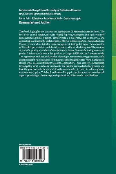 This book highlights the concept and applications of Remanufactured Fashion. The first book on this subject, it covers reverse logistics, exemplars, and case studies of remanufactured fashion design. Textile waste is a major issue for all countries, and converting that waste into useful products offers a sensible solution. Remanufactured Fashion is one such sustainable waste management strategy. It involves the conversion of discarded garments into useful retail products, without which they would be dumped at landfills, posing a number of environmental issues. Remanufacturing recovers a product's inherent value once that product no longer fulfills the user's desired needs. The application and use of discarded clothing in remanufacturing processes could greatly reduce the percentage of clothing waste (and mitigate related waste management issues), while also contributing to resource conservation. There has been scant research investigating what is actually involved in the fashion remanufacturing process and how the process could be up-scaled to the mass market in order to achieve greater environmental gains. This book addresses that gap in the literature and examines all aspects pertaining to the concept and applications of Remanufactured Fashion.