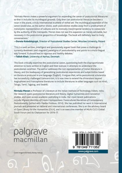 This book critically examines the postcolonial canon, questioning both the disproportionate attention to texts written in English and their overuse in attempts to understand the postcolonial condition. The author addresses the non-representation of Indian literature in theory, and the inadequacy of generalizing postcolonial experiences and subjectivities based on literature produced in one language (English). It argues that, while postcolonial scholarship has successfully challenged Eurocentrism, it is now time to extend the dimensions beyond Anglophone and Francophone literatures to include literatures in other languages such as Hindi, Telugu, Tamil, Tagalog, and Swahili.