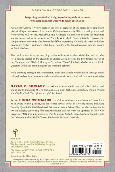Remarkable Colorado Women celebrates the women who shaped the Centennial State. Short, illuminating biographies and archival photographs and paintings tell the stories of women from across the state who served as teachers, writers, entrepreneurs, and artists.