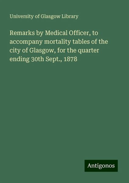 Remarks by Medical Officer, to accompany mortality tables of the city of Glasgow, for the quarter ending 30th Sept., 1878 - Library, University Of Glasgow