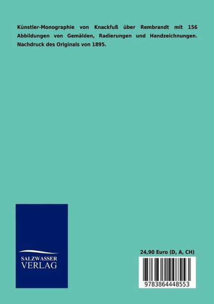 Künstler-Monographie von Knackfuß über Rembrandt mit 156 Abbildungen von Gemälden, Radierungen und Handzeichnungen. Nachdruck des Originals von 1895.