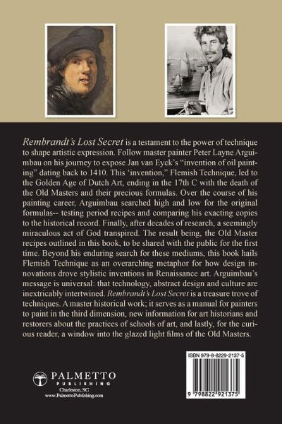 Rembrandt's Lost Secret is a testament to the power of technique to shape artistic expression. Follow master painter Peter Layne Arguimbau on his journey to expose Jan van Eyck's "invention of oil painting" dating back to 1410. This 'invention', Flemish Technique, led to the Golden Age of Dutch Art, ending with the death of the Old Masters and their precious formulas. Over the course of his painting career, Arguimbau searched high and low for the original formulas-- testing period recipes and meticulously comparing his exacting copies to the historical record. Finally, after decades of research, a seemingly miraculous act of God transpired. The result being the recipes outlined in this book for a modern-day equivalent of the Old Master recipes to be shared with the public for the first time. Beyond his enduring search for these lost formulas, this book also positions the development of the Flemish Technique as an overarching metaphor for how innovations in craft drove stylistic inventions for design in Renaissance art. Arguimbau's message is universal: that technology, abstract design and culture are inextricably intertwined. Rembrandt's Lost Secret is a treasure trove of celebratory engagement with that three-centuries-long story of cultural evolution. A master historical work, it will be a manual for painters, an instructive read for the art community, and the curious to experience the Luminist quality of light of the Dutch Masters.