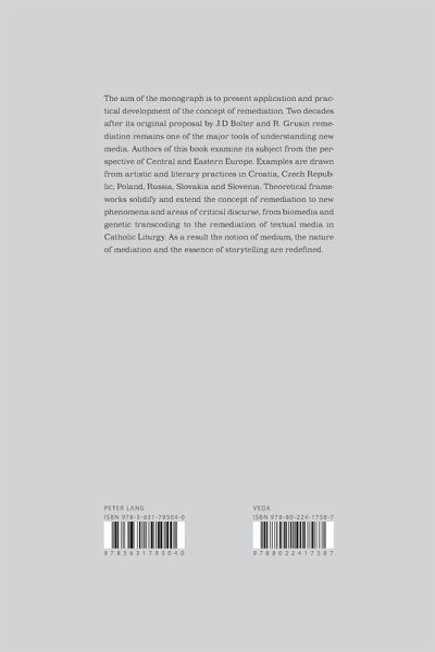 The aim of the monograph is to present the application and practical development of the concept of remediation. Two decades after its original proposal by J.D Bolter and R. Grusin, remediation remains one of the major tools of understanding new media. The authors of this book examine the subject from the perspective of Central and Eastern Europe. Examples are drawn from artistic and literary practices in Croatia, Czech Republic, Poland, Russia, Slovakia and Slovenia. Theoretical frameworks solidify and extend the concept of remediation to new phenomena and areas of critical discourse, from biomedia and genetic transcoding to the remediation of textual media in Catholic Liturgy. As a result, the notion of medium, the nature of mediation and the essence of storytelling are redefined.