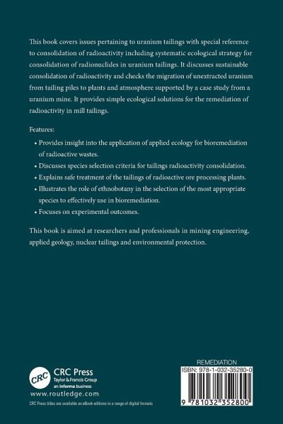 The book covers issues pertaining to uranium tailings with special reference to consolidation of radioactivity including systematic ecological strategy for consolidation of radionuclides in Uranium tailings. It discusses sustainable consolidation of radioactivity and migration of unextracted uranium from tailing piles to plants and atmosphere.