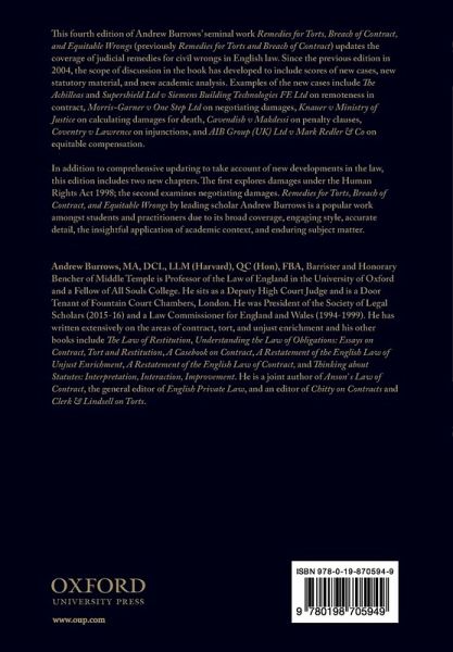 Remedies for Torts, Breach of Contract, and Equitable Wrongs, fourth edition, is a major text for students, legal practitioners and academics. Celebrated as a leading work on judicial remedies for civil wrongs in English law, this accessible and enduring work is extensively revised for its fourth edition (2019).