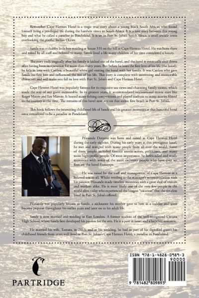 Remember Cape Hermes Hotel is a tragic true story about a young black South African who found himself living a privileged life during the harshest times in South Africa. It is a love story between this young boy and what he called a paradise in Pondoland. It is set in Port St. John's South Africa, a small seaside town overlooking the playful Indian Ocean. Sande was a chubby little boy residing at house 331 on the hill at Cape Hermes Hotel. He was born there and raised by all staff and beloved to many. Sande lived a life many children of his time considered a luxury. The story ends tragically after his family is kicked out of the hotel, and the hotel is eventually shut down after having been in operation for more than thirty years. But before he loses the first love of his life (the hotel), he falls in love with Caitlyn, a beautiful white girl visiting the hotel with her family. It was Caitlyn who gave Sande his first kiss and influenced the rest of his life. This story is complete with interesting and memorable characters and will make you fall in love with Port St. John's and Cape Hermes Hotel. Cape Hermes Hotel was popularly famous for its exquisite sea views and charming family rooms, which made the stay of any guest memorable. In its greatest years, it accommodated international movie stars like Roger Moore and Lee Marvin. It hosted many fishing competitions and played stadium to many movies filmed in the country at the time. The remains of this hotel now rest on that scenic first beach in Port St. John's. This book follows the interesting childhood life of Sande and his greatest moments at that beautiful hotel once considered to be a paradise in Pondoland.
