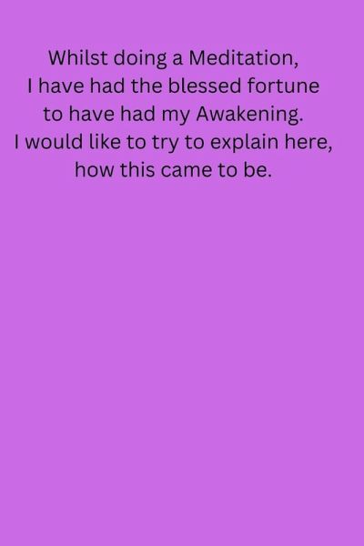 "Whilst doing a Meditation, I have had the blessed fortune to have had my Awakening. I would like to try to explain here, how this came to be."