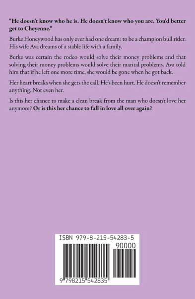 "He doesn't know who he is. He doesn't know who you are. You'd better get to Cheyenne." Burke Honeywood has only ever had one dream: to be a champion bull rider. His wife Ava dreams of a stable life with a family. Burke was certain the rodeo would solve their money problems and that solving their money problems would solve their marital problems. Ava told him that if he left one more time, she would be gone when he got back. Her heart breaks when she gets the call. He's been hurt. He doesn't remember anything. Not even her. Is this her chance to make a clean break from the man who doesn't love her anymore? Or is this her chance to fall in love all over again? Read the complete series: Marry Me, Cowboy Know Me, Cowboy Protect Me, Cowboy Remember Me, Cowboy Forgive Me, Cowboy Love Me, Cowboy