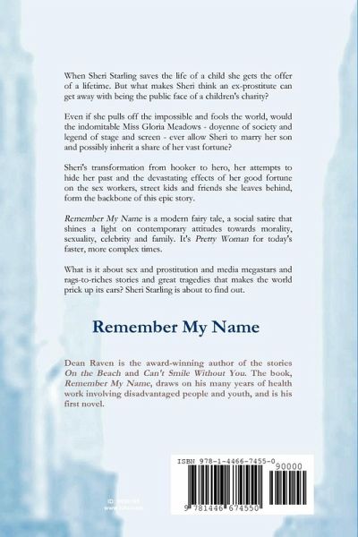 When Sheri Starling saves the life of a child she gets the offer of a lifetime. But what makes Sheri think an ex-prostitute can get away with being the public face of a children's charity? Even if she pulls off the impossible and fools the world, would the indomitable Miss Gloria Meadows ever allow Sheri to marry her son and possibly inherit a share of her vast fortune? Sheri's transformation from hooker to hero, her attempts to hide her past and the devastating effects of her good fortune on the sex workers, street kids and friends she leaves behind, form the backbone of this epic story. 'Remember My Name' is a modern fairy tale, a social satire that shines a light on contemporary attitudes towards morality, sexuality, celebrity and family. It's 'Pretty Woman' for today's faster, more complex times. What is it about sex and prostitution and media megastars and rags-to-riches stories and great tragedies that makes the world prick up its ears? Sheri Starling is about to find out.