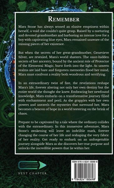 Mara Stone has always sensed an elusive emptiness within herself, a void she couldn't quite grasp. Raised by a nurturing and devoted grandmother and harboring an intense love for a boy with captivating blue eyes, Mara remained unaware of the missing pieces of her existence. But when the secrets of her great-grandmother, Genevieve Silver, are revealed, Mara's world shatters. The once-hidden secrets of her ancestry, bound by the ancient role of Protector of the Elemental Magic, burst forth into the light. As unseen realms are laid bare and forgotten memories flood her mind, Mara must confront a reality both wondrous and terrifying. In an extraordinary twist of fate, the revelations reshape Mara's life, forever altering not only her own destiny but the entire world she thought she knew. Embracing her newfound knowledge, Mara embarks on a transformative journey filled with enchantment and peril. As she grapples with her own powers and unravels the mysteries that surround her, Mara becomes a beacon of hope in a world teetering on the brink of chaos. Prepare to be captivated by a tale where the ordinary collides with the extraordinary. In this immersive adventure, Mara Stone's awakening will leave an indelible mark, forever changing the course of her life and reshaping the very fabric of her reality. Get ready to embark on an unforgettable journey alongside Mara as she discovers her true purpose and unlocks the incredible powers that lie within her.
