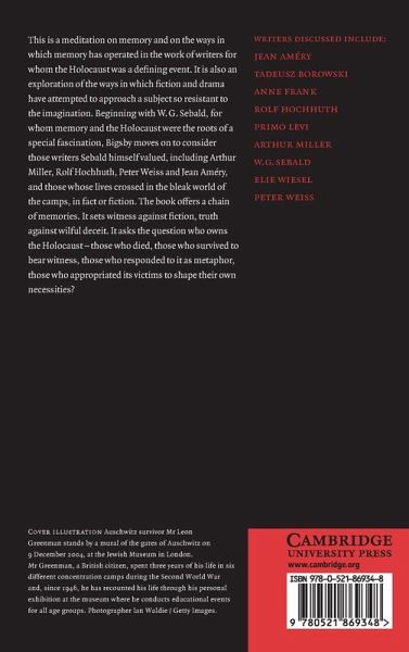 This is a meditation on memory and on the ways in which memory has operated in the work of writers for whom the Holocaust was a defining event. It is also an exploration of the ways in which fiction and drama have attempted to approach a subject so resistant to the imagination. Beginning with W. G. Sebald, for whom memory and the Holocaust were the roots of a special fascination, Bigsby moves on to consider those writers Sebald himself valued, including Arthur Miller, Anne Frank, Primo Levi and Peter Weiss, and those whose lives crossed in the bleak world of the camps, in fact or fiction. The book offers a chain of memories. It sets witness against fiction, truth against wilful deceit. It asks the question who owns the Holocaust - those who died, those who survived to bear witness, those who appropriated its victims to shape their own necessities.