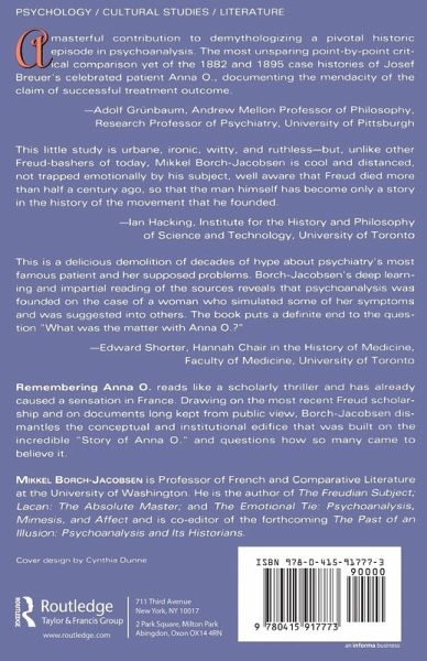Remembering Anna O. offers a devastating examination of the very foundations of psychoanalytic theory and practice, which was born with the publication of Breuer and Freud's Studies on Hysteria in 1895. Breuer described the case of Anna O., a young woman afflicted with a severe hysteria whom he had cured of her symptoms by having her recount under hypnosis the traumatic events that precipitated her illness. Drawing on the most recent Freud scholarship and on long-secret documents, Borch-Jacobsen demonstrates, however, that Anna O. (Bertha Pappenheim) was never cured by Breuer's "talking cure" and that both Breuer and Freud knowingly falsified the historical record. Borch-Jacobsen points out the numerous inconsistencies in Breuer's account that suggests that Anna O.'s symptoms were simulated to meet Breuer's theoretical expectations and that her famed "reminiscences" were in fact fictitious memories induced by Breuer in the course of a hypnotic treatment.