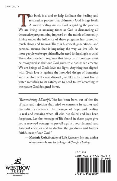This book is a tool to help facilitate the healing and restoration process that ultimately God brings forth. A sacred healing means God is guiding the process. We are living in amazing times as God is dismantling all destructive programming imposed on the minds of humanity. Living under the influence of these programs has caused so much chaos and trauma. There is historical, generational and personal trauma that is impacting the way we live life. As more people wake up spiritually, the need for healing is crucial. These deep seeded programs that keep us in bondage must be recognized so that our God given true nature can emerge. We are beings of God's love and light. Anything not aligned with Gods love is against the intended design of humanity and therefore will cause discord. Just like a fish must live in water according to its nature, we to need to live according to the nature God designed for us.