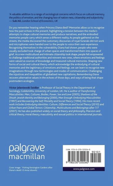 Preface: Embodying Memories: Echoes of Diana and the Re-invention of Authority Introduction: Post-traditional Imaginations and Cultural Memories of Grief Cultural Memories, Myths, Icons and Images Shock, Public Grief and Spaces of Belonging Authority, Masculinities and Emotional Lives Citizenships, Multicultures and 'Community' Grief, Public Space and 'People's Power' Symbolic Resistance, Love and Relationship Cultural Memories, Vulnerability and Human Values Democracy,'New Britain', Freedom and Self-Invention Authority, Recognition, Voice and the Media Conclusion: Postmodern Identities, Citizenships and the Re-invention of Authority Bibliography Index