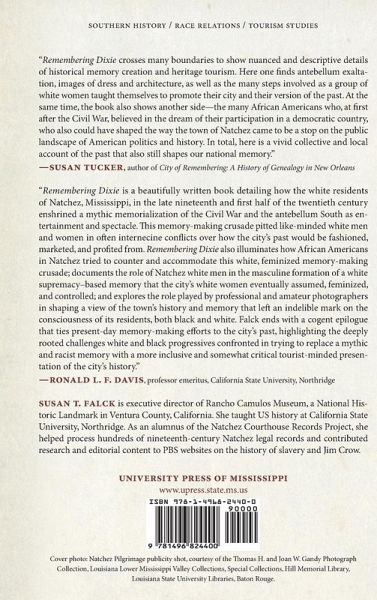 Nearly seventy years after the Civil War, Natchez, Mississippi, sold itself to Depression-era tourists as a place "Where the Old South Still Lives." Tourists flocked to view the town's decaying antebellum mansions, hoopskirted hostesses, and a pageant saturated in sentimental Lost Cause imagery. In Remembering Dixie: The Battle to Control Historical Memory in Natchez, Mississippi, 1865-1941, Susan T. Falck analyzes how the highly biased, white historical memories of what had been a wealthy southern hub originated from the experiences and hardships of the Civil War. These collective narratives eventually culminated in a heritage tourism enterprise still in business today. Additionally, the book includes new research on the African American community's robust efforts to build historical tradition, most notably, the ways in which African Americans in Natchez worked to create a distinctive postemancipation identity that challenged the dominant white structure. Using a wide range of late nineteenth- and early twentieth-century sources--many of which have never been fully mined before--Falck reveals the ways in which black and white Natchezians of all classes, male and female, embraced, reinterpreted, and contested Lost Cause ideology. These memory-making struggles resulted in emotional, internecine conflicts that shaped the cultural character of the community and impacted the national understanding of the Old South and the Confederacy as popular culture. Natchez remains relevant today as a microcosm for our nation's modern-day struggles with Lost Cause ideology, Confederate monuments, racism, and white supremacy. Falck reveals how this remarkable story played out in one important southern community over several generations in vivid detail and richly illustrated analysis.