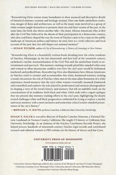 Nearly seventy years after the Civil War, Natchez, Mississippi, sold itself to Depression-era tourists as a place "Where the Old South Still Lives." Tourists flocked to view the town's decaying antebellum mansions, hoopskirted hostesses, and a pageant saturated in sentimental Lost Cause imagery. In Remembering Dixie: The Battle to Control Historical Memory in Natchez, Mississippi, 1865-1941, Susan T. Falck analyzes how the highly biased, white historical memories of what had been a wealthy southern hub originated from the experiences and hardships of the Civil War. These collective narratives eventually culminated in a heritage tourism enterprise still in business today. Additionally, the book includes new research on the African American community's robust efforts to build historical tradition, most notably, the ways in which African Americans in Natchez worked to create a distinctive postemancipation identity that challenged the dominant white structure. Using a wide range of late nineteenth- and early twentieth-century sources--many of which have never been fully mined before--Falck reveals the ways in which black and white Natchezians of all classes, male and female, embraced, reinterpreted, and contested Lost Cause ideology. These memory-making struggles resulted in emotional, internecine conflicts that shaped the cultural character of the community and impacted the national understanding of the Old South and the Confederacy as popular culture. Natchez remains relevant today as a microcosm for our nation's modern-day struggles with Lost Cause ideology, Confederate monuments, racism, and white supremacy. Falck reveals how this remarkable story played out in one important southern community over several generations in vivid detail and richly illustrated analysis.