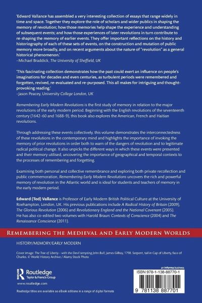 Remembering Early Modern Revolutions is the first study of memory in relation to the major revolutions of the early modern period. Beginning with the English revolutions of the seventeenth century (1642-60 and 1688-9), this book also explores the American, French and Haitian revolutions. Through addressing these events collectively, this volume demonstrates the interconnectedness of these revolutions in the contemporary mind and highlights the importance of invoking the memory of prior revolutions in order both to warn of the dangers of revolution and to legitimate radical political change. It also unpicks the different ways in which these events were presented and their memory utilised, uncovering the importance of geographical and temporal contexts to the processes of remembering and forgetting. Examining both personal and collective remembrance and exploring both private recollection and public commemoration, Remembering Early Modern Revolutions uncovers the rich and powerful memory of revolution in the Atlantic world and is ideal for students and teachers of memory in the early modern period.