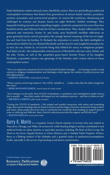 Daily Meditation readers abound; some, thankfully, endure. Rare are spiritually grounded and contemplative invitations that feature four generations of earnest family teachers, preachers, activists, journalists, and controversial prophets. In various life conditions, threatening and challenged by sickness and despair, herein are eight Niebuhrs' faithful wrestlings. They bequeath bristling morsels and compelling insights, creatively compacted into more than four hundred entries and reference leads for further consideration. Thus, deeply influenced by the patriarch and matriarch, Gustav Sr. and Lydia, arise Reinhold's steadfast reflections on grace-grounded justice and its principles; the caringly layered meanings of the love of neighbor and God from his brother, H. Richard; the dedication to render the faith intelligible to postmoderns held by his son, Richard Reinhold; and the decisive and insightful journalism by, in turn, his son, Gustav Jr., on Lincoln being duly lobbied for mercy to indigenous peoples. And that's not all--the indispensable reminiscences of Reinhold's educator sister, Hulda, and his wife, Ursula, as well as the unearthed grace-based Serenity Prayer of his daughter Elisabeth, corporately express rare gleanings of the Niebuhr clan's virtual school of warm contemplative action.