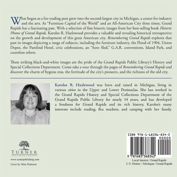 What began as a fur-trading post grew into the second-largest city in Michigan, a center for industry and the arts. As "Furniture Capital of the World" and an All-American City three times, Grand Rapids has a fascinating past. With a selection of fine historic images from her best-selling book Historic Photos of Grand Rapids, Karolee R. Hazlewood provides a valuable and revealing historical retrospective on the growth and development of this great American city. Remembering Grand Rapids explores that past in images depicting a range of subjects, including the furniture industry, the Flood of 1904, Union Depot, the Pantlind Hotel, civic celebrations, an "Aero Sled,? G.A.R. conventions, Island Park, and countless others. These striking black-and-white images are the pride of the Grand Rapids Public Library's History and Special Collections Department. Come take a tour through the pages of Remembering Grand Rapids and discover the charm of bygone eras, the fortitude of the city's pioneers, and the richness of the old city.