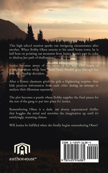 This high school reunion sparks one intriguing circumstance after another. When Bobby Olsen returns to his small home town, he is hell bent on pointing out moments from Jessica Kasta's past in order to disclose her path of shallowness. Jessica becomes aware of the errors of her way with hopes of correcting them while best friend Patty Madiel goes through her own relationship disorders. After a former classmate gives the girls a frightening surprise, they hide precious information from each other during an attempt to analyze their dilemmas separately. The plot becomes a puzzle where Bobby supplies the final pieces for the rest of the gang to put into place for Jessica. Remembering Olsen is a dark, not dreary, supernatural thriller that boggles the mind and stretches the imagination up until it's satisfyingly, stunning climax. Will Jessica be fulfilled when she finally begins remembering Olsen?