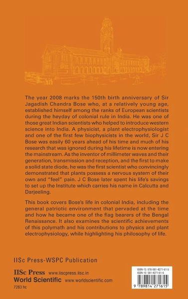 The year 2008 marks the centennial birth anniversary of Sir Jagadish Chandra Bose who, at a relatively young age, established himself among the ranks of European scientists during the heyday of colonial rule in India. He was one of those great Indian scientists who helped to introduce western science into India. A physicist, a plant electrophysiologist and one of the first few biophysicists in the world, Sir J C Bose was easily 60 years ahead of his time and much of his research that was ignored during his lifetime is now entering the mainstream. As the inventor of millimeter waves and their generation, transmission and reception, and the first to make a solid state diode, he was the first scientist who convincingly demonstrated that plants possess a nervous system of their own and "feel" pain. J C Bose later spent his life's savings to set up the Institute which carries his name in Calcutta and Darjeeling. This book covers Bose's life in colonial India, including the general patriotic environment that pervaded at the time and how he became one of the flag bearers of the Bengal Renaissance. It also examines the scientific achievements of this polymath and his contributions to physics and plant electrophysiology, while highlighting his philosophy of life.