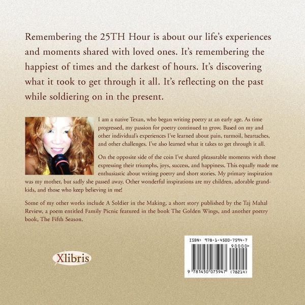 Remembering the 25TH Hour is about our life's experiences and moments shared with loved ones. It's remembering the happiest of times and the darkest of hours. It's discovering what it took to get through it all. It's reflecting on the past while soldiering on in the present.