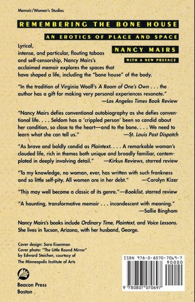 Nancy Mairs reconstructs her past by exploring her erotic and emotional development in order to lay claim to her life—and women's lives in general. Lyrical, intense, and particular, flouting taboos and self-censorship, this acclaimed memoir explores the spaces that have shaped a life, including the "bone house" of her body.