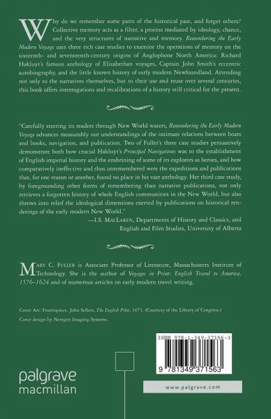 "Carefully steering its readers through New World waters, Remembering the Early Modern Voyage advances measurably our understandings of the intimate relations between boats and books, navigation, and publication. Two of Fuller s three case studies persuasively demonstrate both how crucial Hakluyt s Principal Navigations was to the establishment of English imperial history and the enshrining of some of its explorers as heroes, and how comparatively ineffective and thus unremembered were the expeditions and publications that, for one reason or another, found no place in his vast anthology. Her third case study, by foregrounding other forms of remembering than narrative publications, not only retrieves a forgotten history of whole English communities in the New World, but also throws into relief the ideological dimensions exerted by publications on historical renderings of the early modern New World." - I.S. MacLaren, Departments of History and Classics, and English and Film Studies, University of Alberta