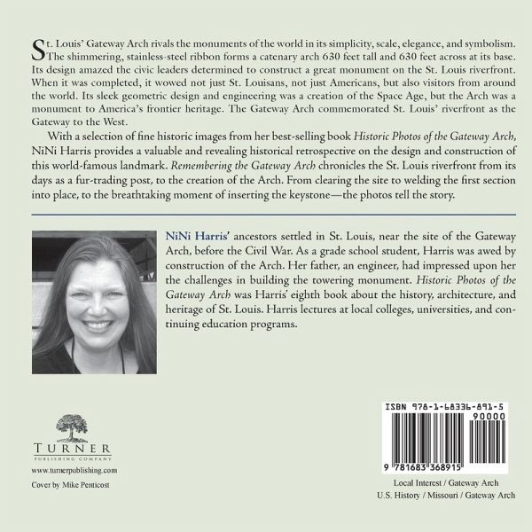 St. Louis' Gateway Arch rivals the monuments of the world in its simplicity, scale, elegance, and symbolism. The shimmering, stainless-steel ribbon forms a catenary arch 630 feet tall and 630 feet across at its base. Its design amazed the civic leaders determined to construct a great monument on the St. Louis riverfront. When it was completed, it wowed not just St. Louisans, not just Americans, but also visitors from around the world. Its sleek geometric design and engineering was a creation of the Space Age, but the Arch was a monument to America’s frontier heritage. The Gateway Arch commemorated St. Louis’ riverfront as the Gateway to the West. With a selection of fine historic images from her best-selling book Historic Photos of the Gateway Arch, NiNi Harris provides a valuable and revealing historical retrospective on the design and construction of this world-famous landmark. Remembering the Gateway Arch chronicles the St. Louis riverfront from its days as a fur-trading post, to the creation of the Arch. From clearing the site to welding the first section into place, to the breathtaking moment of inserting the keystone-the photos tell the story.