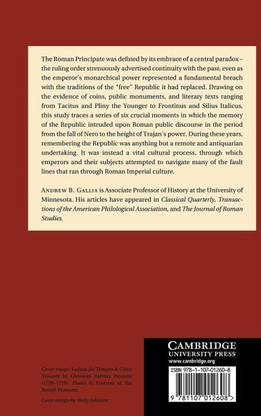 The Roman Principate was defined by its embrace of a central paradox - the ruling order strenuously advertised continuity with the past, even as the emperor's monarchical power represented a fundamental breach with the traditions of the 'free' Republic it had replaced. Drawing on the evidence of coins, public monuments and literary texts ranging from Tacitus and Pliny the Younger to Frontinus and Silius Italicus, this study traces a series of six crucial moments in which the memory of the Republic intruded upon Roman public discourse in the period from the fall of Nero to the height of Trajan's power. During these years, remembering the Republic was anything but a remote and antiquarian undertaking. It was instead a vital cultural process, through which emperors and their subjects attempted to navigate many of the fault lines that ran through Roman Imperial culture.