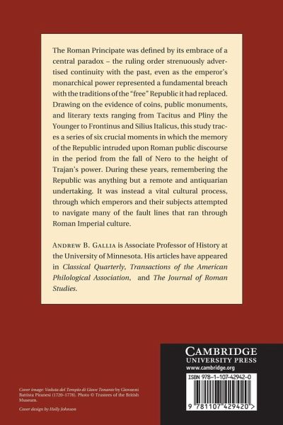 The Roman Principate was defined by its embrace of a central paradox - the ruling order strenuously advertised continuity with the past, even as the emperor's monarchical power represented a fundamental breach with the traditions of the 'free' Republic it had replaced. Drawing on the evidence of coins, public monuments and literary texts ranging from Tacitus and Pliny the Younger to Frontinus and Silius Italicus, this study traces a series of six crucial moments in which the memory of the Republic intruded upon Roman public discourse in the period from the fall of Nero to the height of Trajan's power. During these years, remembering the Republic was anything but a remote and antiquarian undertaking. It was instead a vital cultural process, through which emperors and their subjects attempted to navigate many of the fault lines that ran through Roman Imperial culture.