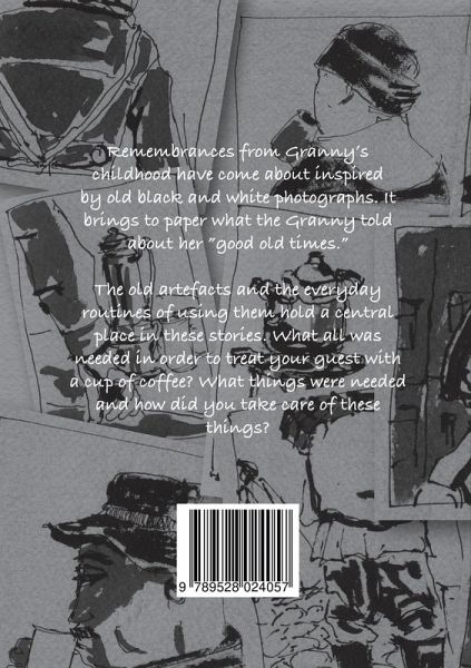 Remembrances form Granny's childhood have come about inspired by old black and white photographs. It brings to paper what the Granny told about her "good old times."The old artefacts and the everyday routines of using them hold a central place in these stories. What all was needed in order to treat your guest with a cup of coffee? What things were needed and how did you take care of these things?