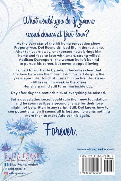 What would you do if given a second chance at first love? As the sexy star of the hit home renovation show Property Ace, Del Reynolds lived life in the fast lane. After ten years away, unexpected news brings him home and face to face with smart, strong-willed Addison Davenport--the woman he left behind to pursue his career, but never stopped loving. Forced to work side by side, it becomes clear that the love between them hasn't diminished despite the years apart. Her touch still sets him on fire. Her kisses still leave him weak in the knees. Her sharp mind still turns him inside out. Day after day she reminds him of everything he missed. But a devastating secret could ruin their new foundation and he soon realizes a second chance for their love might not be written in any script. Still, Del knows how to see potential when it seems all is lost and he wants nothing more than to make Addison his again. Forever.