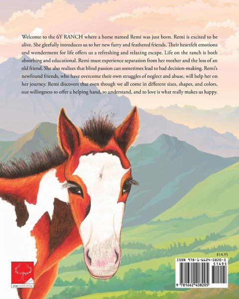 Welcome to the 6Y RANCH where a horse named Remi was just born. Remi is excited to be alive. She gleefully introduces us to her new furry and feathered friends. Their heartfelt emotions and wonderment for life offers us a refreshing and relaxing escape. Life on the ranch is both absorbing and educational. Remi must experience separation from her mother and the loss of an old friend. She also realizes that blind passion can sometimes lead to bad decision-making. Remi's newfound friends, who have overcome their own struggles of neglect and abuse, will help her on her journey. Remi discovers that even though we all come in different sizes, shapes, and colors, our willingness to offer a helping hand, to understand, and to love is what really makes us happy.