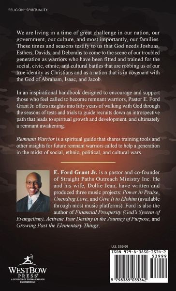 We are living in a time of great challenge in our nation, our government, our culture, and most importantly, our families. These times and seasons testify to us that God needs Joshuas, Esthers, Davids, and Deborahs to come to the scene of our troubled generation as warriors who have been fitted and trained for the social, civic, ethnic, and cultural battles that are robbing us of our true identity as Christians and as a nation that is in covenant with the God of Abraham, Isaac, and Jacob. In an inspirational handbook designed to encourage and support those who feel called to become remnant warriors, Pastor E. Ford Grant Jr. offers insights into fifty years of walking with God through the seasons of tests and trials to guide recruits down an introspective path that leads to spiritual growth and development, and ultimately a remnant awakening. Remnant Warrior is a spiritual guide that shares training tools and other insights for future remnant warriors called to help a generation in the midst of social, ethnic, political, and cultural wars.