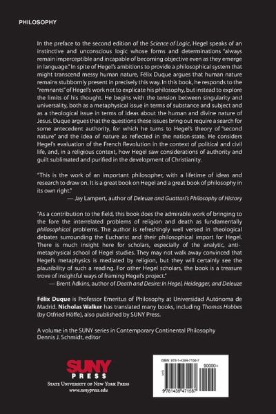 Félix Duque is Professor Emeritus of Philosophy at Universidad Autónoma de Madrid. Nicholas Walker has translated many books, including Thomas Hobbes (by Otfried Höffe), also published by SUNY Press.