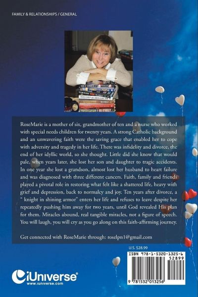 RoseMarie is a mother of six, a grandmother of ten, and a nurse who worked with special needs children for twenty years. A strong Catholic background and an unwavering faith were the saving grace that enabled her to cope with adversity and tragedy in her life. There was infidelity and divorce, the end of her idyllic world-or so she thought. Little did she know that would pale when years later she lost her son and daughter to tragic accidents. In one year she also lost a grandson, almost lost her husband to heart failure, and was diagnosed with three different cancers. Faith, family, and friends played a pivotal role in restoring what felt like a shattered life, heavy with grief and depression, back to normalcy and joy. Ten years after the divorce, a "knight in shining armor" enters her life and refuses to leave despite her repeated pushing away for two years, until God revealed his plan for them. Miracles abound-real tangible miracles, not just a figure of speech. You will laugh and you will cry as you go along on this faith-affirming journey.