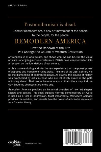 Postmodernism is dead. Discover Remodernism, a new art movement of the people, by the people, for the people Remodern America How the Renewal of the Arts Will Change the Course of Western Civilization Art reminds us of who we are, and shows what we can be. But the visual arts are undergoing a crisis of relevance. Elitists have weaponized art into an assault on the foundations of our culture. Art is a more enduring and vital human experience than the power games of a greedy and fraudulent ruling class. The story of the 21st Century will be the dismantling of centralized power. As always, this course of history was prophesied by artists-those who are intuitively aware of the path unfolding ahead. Their works become maps so that others may find the way. Enduring changes start in the arts. Remodern America provides an historical overview of how art shapes society and politics. This book exposes how the contemporary art world is used as a tool of oppression. Most importantly, Remodern America provides the solution, and reveals how the power of art can be reclaimed as a force for liberty.