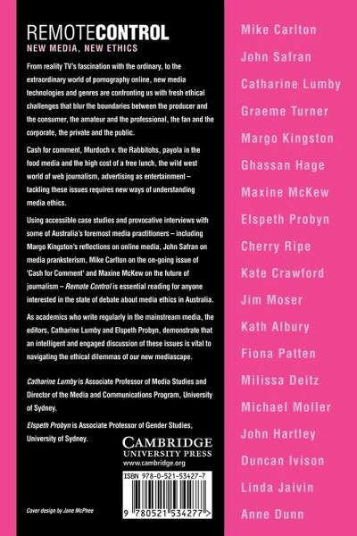 This book examines the ethical challenges posed by new media formats, technologies and audiences. It considers how these emerging genres and technologies work, how they are reshaping the public sphere, and how the connections between product and viewer, and producer and media consumer, are being changed by new shows and formats. It includes lively chapters from a range of prominent media commentators and practitioners on a diverse range of issues, including reality TV, on-line media, the cash for comment scandal and emerging philosophical approaches to new media ethics. With so much interest in contemporary media forms, and so many heated debates about media ethics, this book will be a must for journalists, media practitioners, watchers and students.