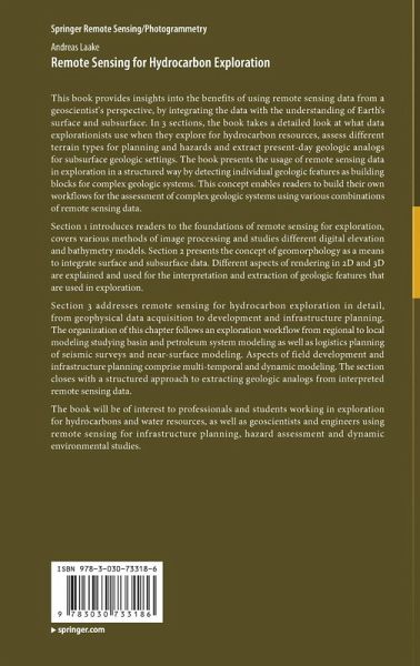 This book provides insights into the benefits of using remote sensing data from a geoscientist's perspective, by integrating the data with the understanding of Earth's surface and subsurface. In 3 sections, the book takes a detailed look at what data explorationists use when they explore for hydrocarbon resources, assess different terrain types for planning and hazards and extract present-day geologic analogs for subsurface geologic settings. The book presents the usage of remote sensing data in exploration in a structured way by detecting individual geologic features as building blocks for complex geologic systems. This concept enables readers to build their own workflows for the assessment of complex geologic systems using various combinations of remote sensing data.